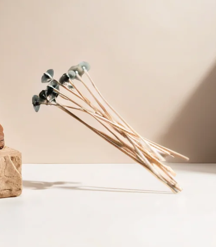 The RFND Wick Range features premium coreless wicks crafted from high-grade cotton and paper filaments, designed for strong blended candles with high fragrance and color loads. Pre-tabbed with metal sustainers, these wicks ensure stability, clean burns, and reliable performance in natural wax blends.